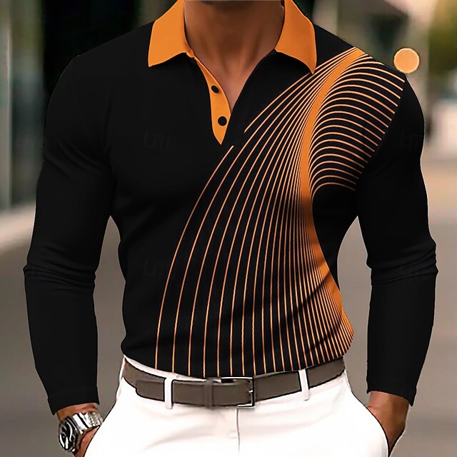 This Men's Geometic Line Polo Long Sleeve Polo Shirts Lapel Business Casual Athleisure Daily Wear 3D Print Buttons Spring Fall Winter Black Blue Orange combines elegant design with practical functionality. Every detail has been carefully considered to ensure you get the finest possible experience. The first-class construction means this product will serve you well for years to come.