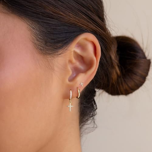 More information about Gold Earrings for Women, 14K Gold Plated Cute Cross Butterfly Star Earring Stacks Dainty Huggie Earrings for Women Trendy Small Gold Hoop Earrings Non Tarnish Womens Jewelry