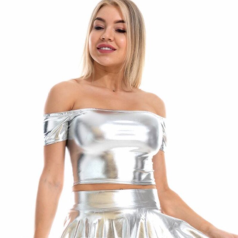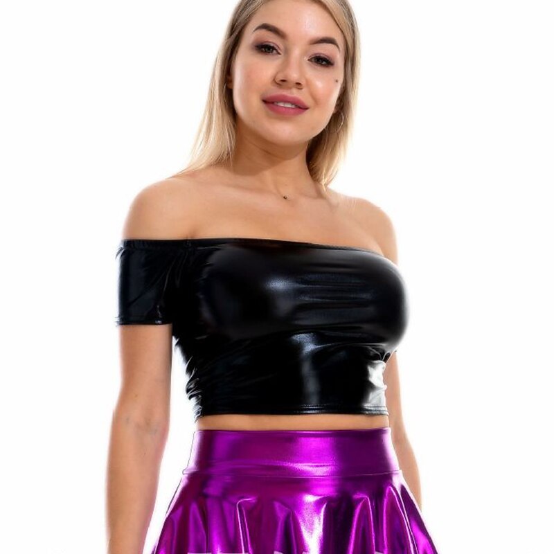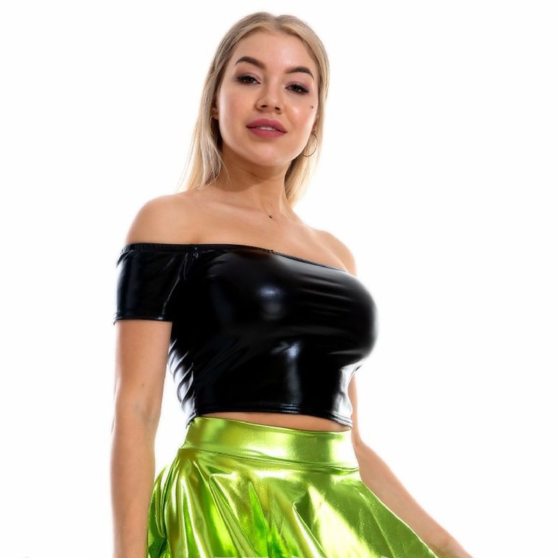 $18.49 - Metallic 1980s Shiny Latex Patent Crop Top PU Leather Off Shoulder Fancy Dress Women's Carnival Costume Masquerade Party Bachelorette Party Pride Parade Adults' Top 2025. Shop for cheap Tops online? Buy at lightinthebox.com on sale today!