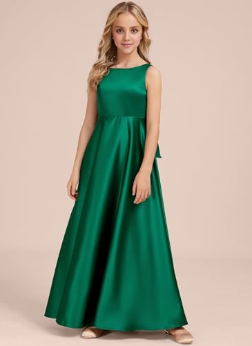 Girls Satin A-line Junior Bridesmaid Dresses Flower Girls Maxi Dresses Formal Party Wedding Gown 6