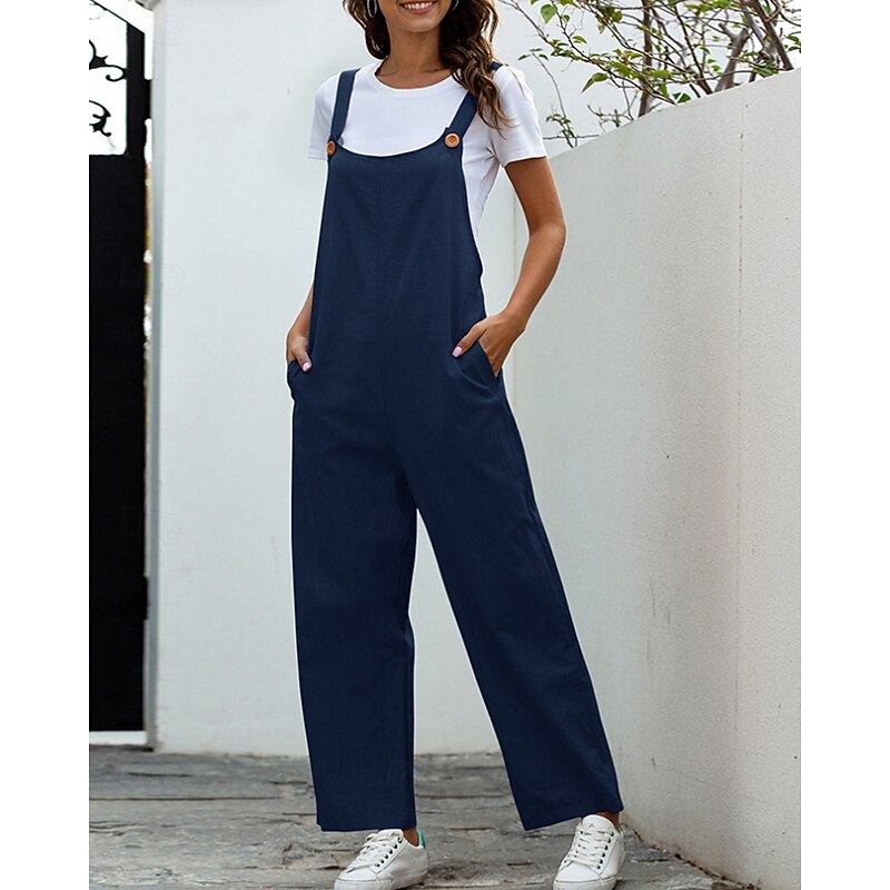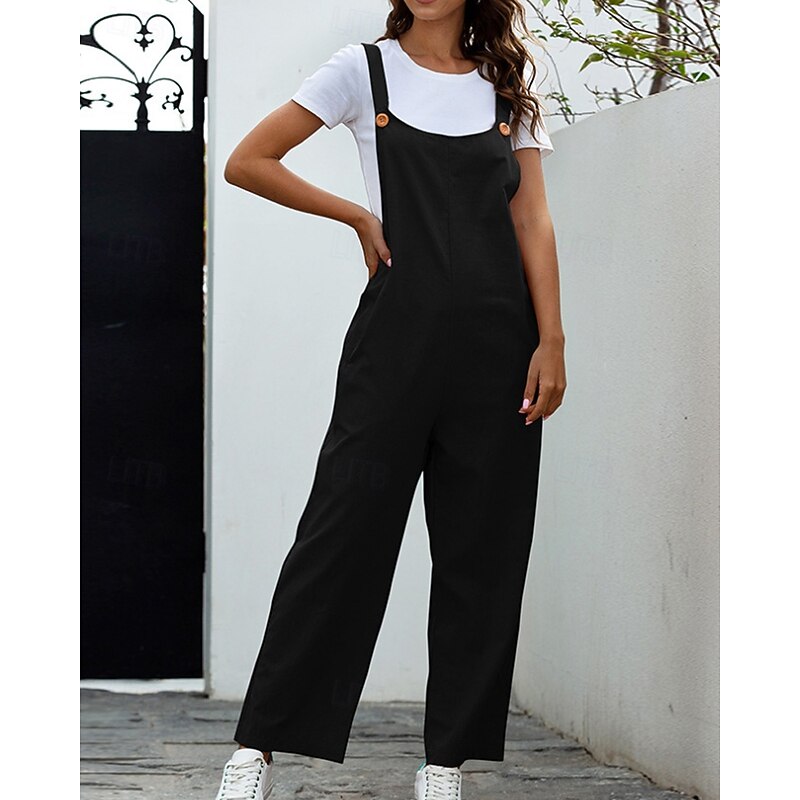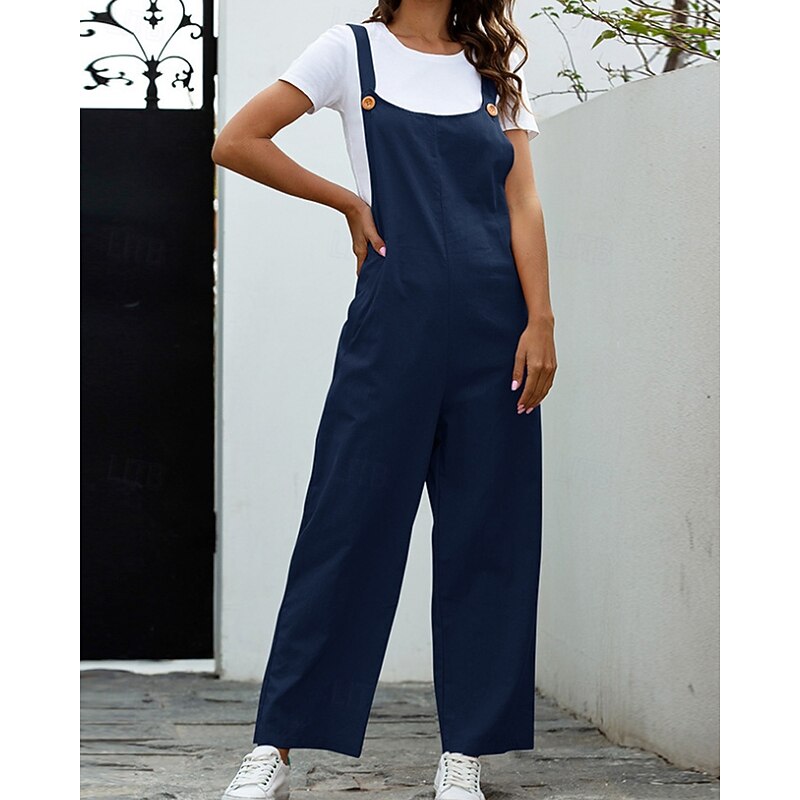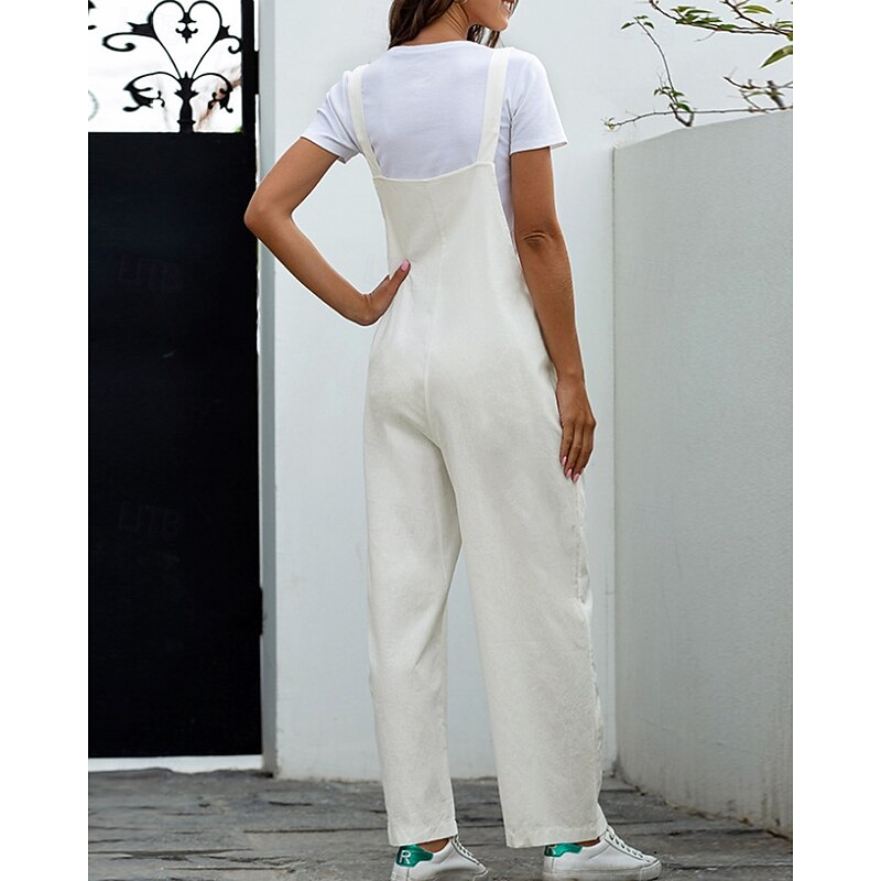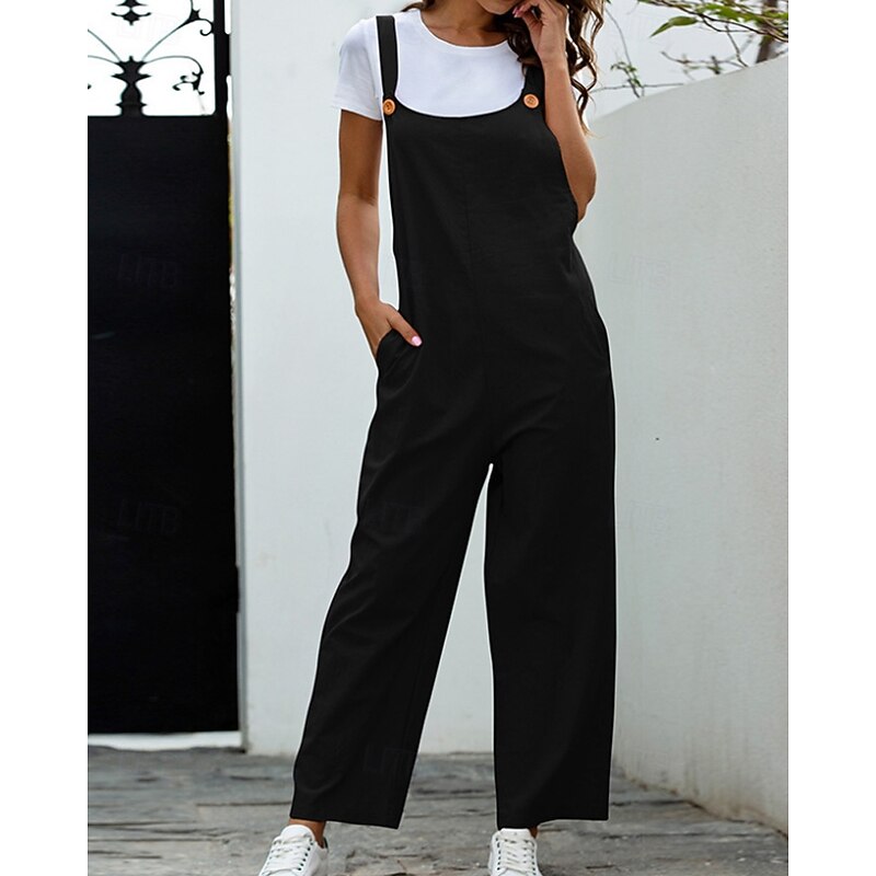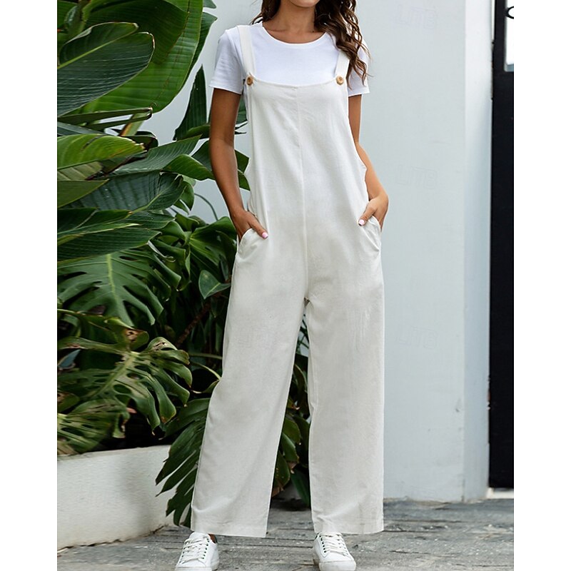 Women's Normal Cotton Linen Pants Basic Solid Color Sleeveless U Neck Pocket Street Going out Regular Fit Black White Navy Blue Summer 1
