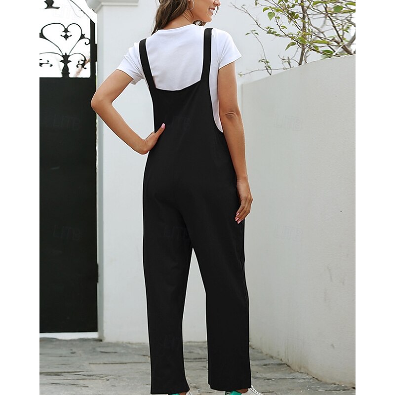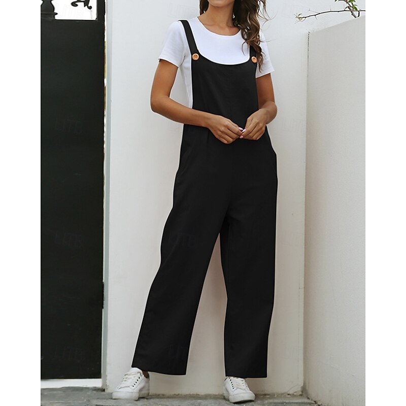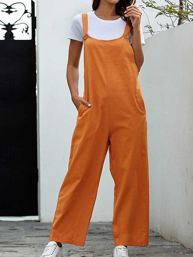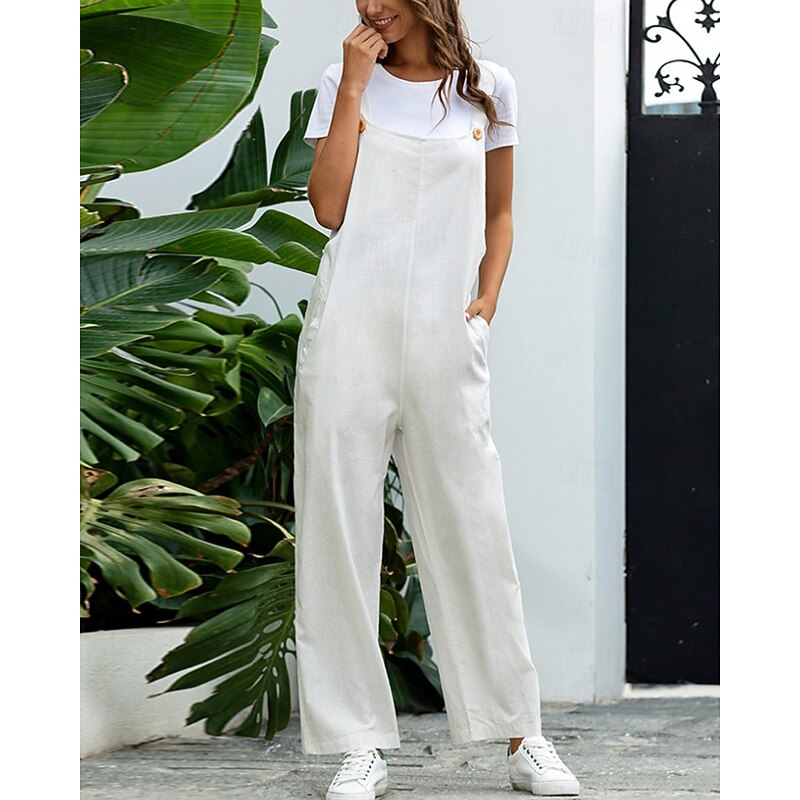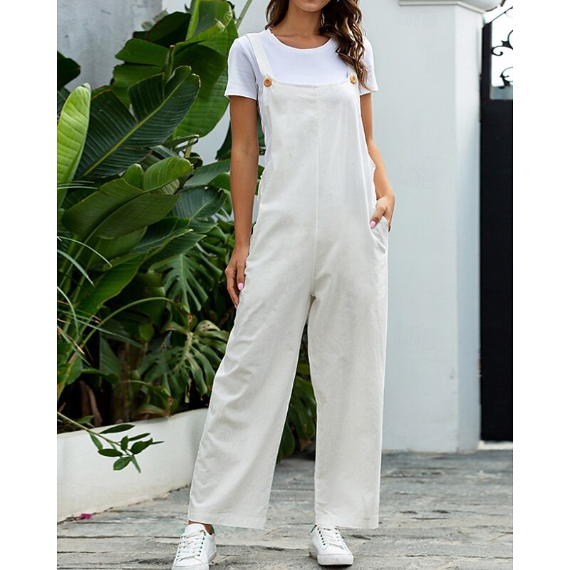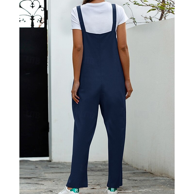 Women's Normal Cotton Linen Pants Basic Solid Color Sleeveless U Neck Pocket Street Going out Regular Fit Black White Navy Blue Summer 1