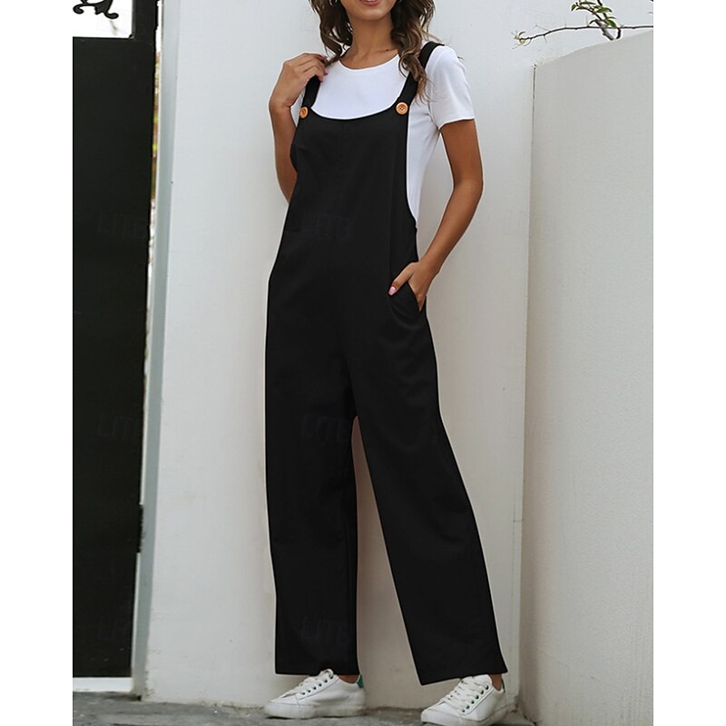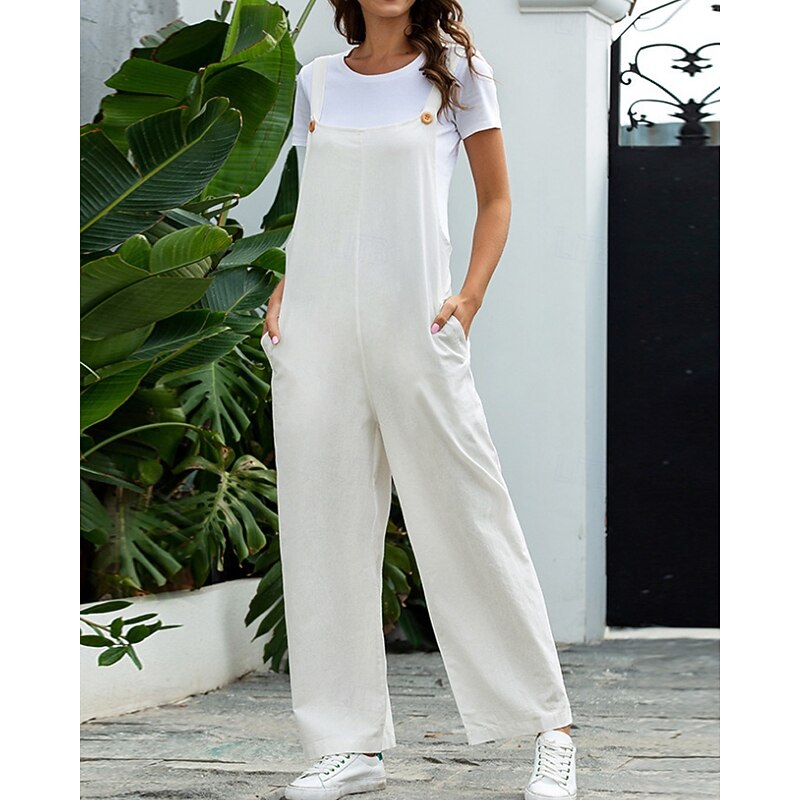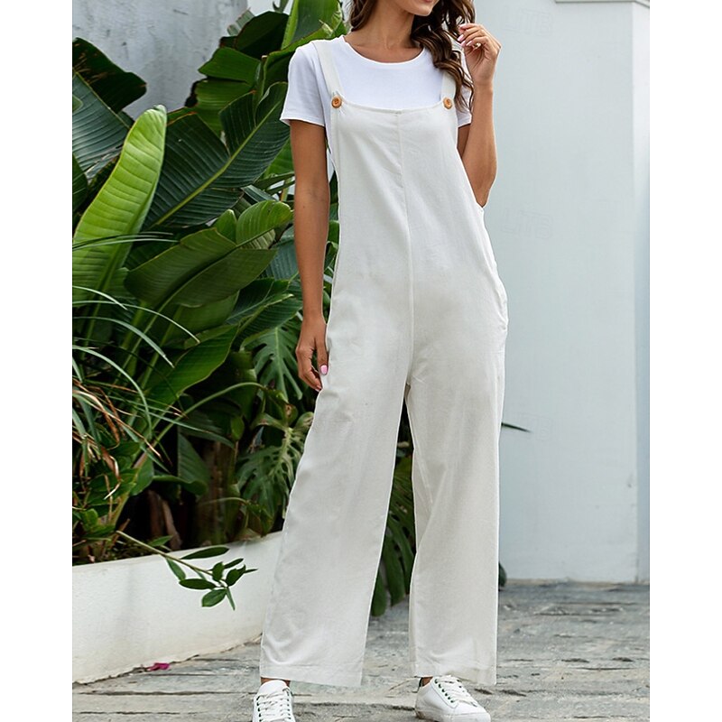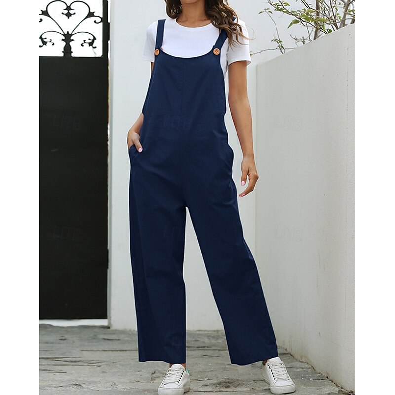 More information about Women's Normal Cotton Linen Pants Basic Solid Color Sleeveless U Neck Pocket Street Going out Regular Fit Black White Navy Blue Summer