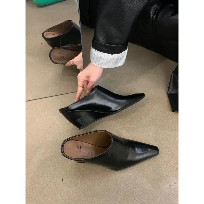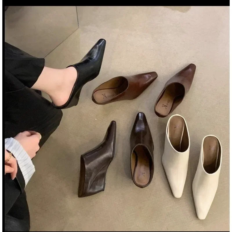 European Soft Leather Slope Heel High Fashion Shoe