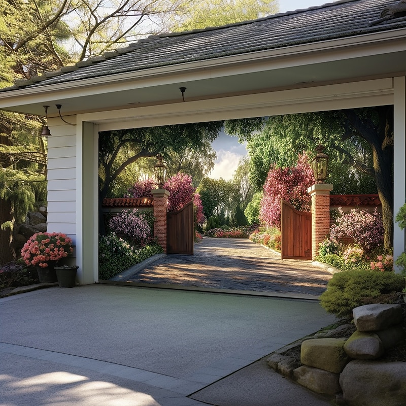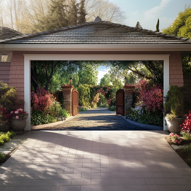Landscape Garden Theme Door Decorations Garage Door Cover Outdoor Banner Large Backdrop for Holiday Outdoor Garage Door Home Wall Decorations 1