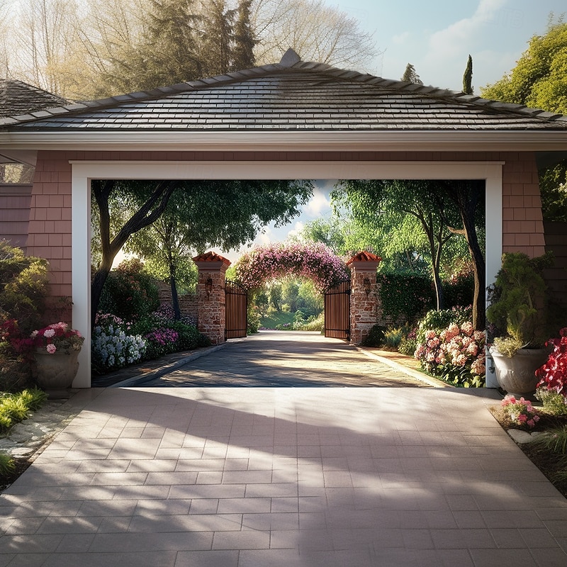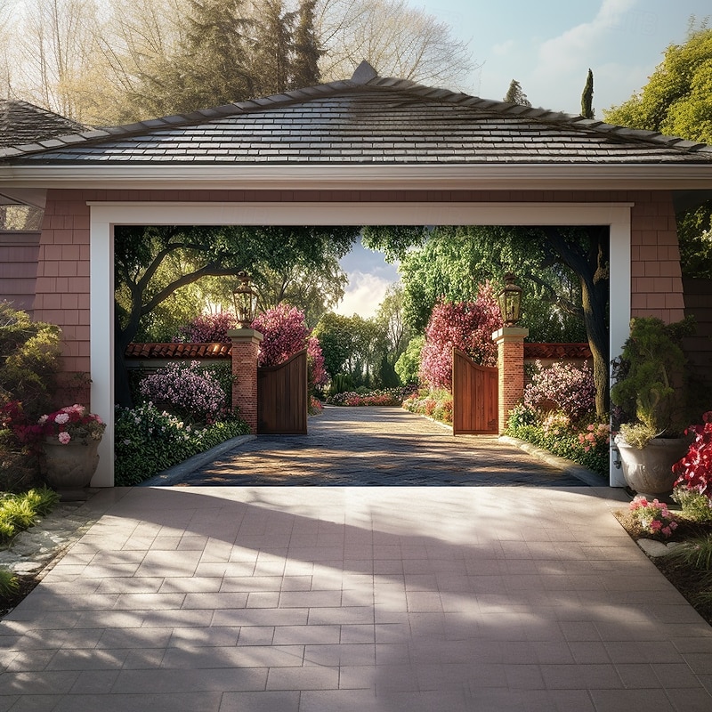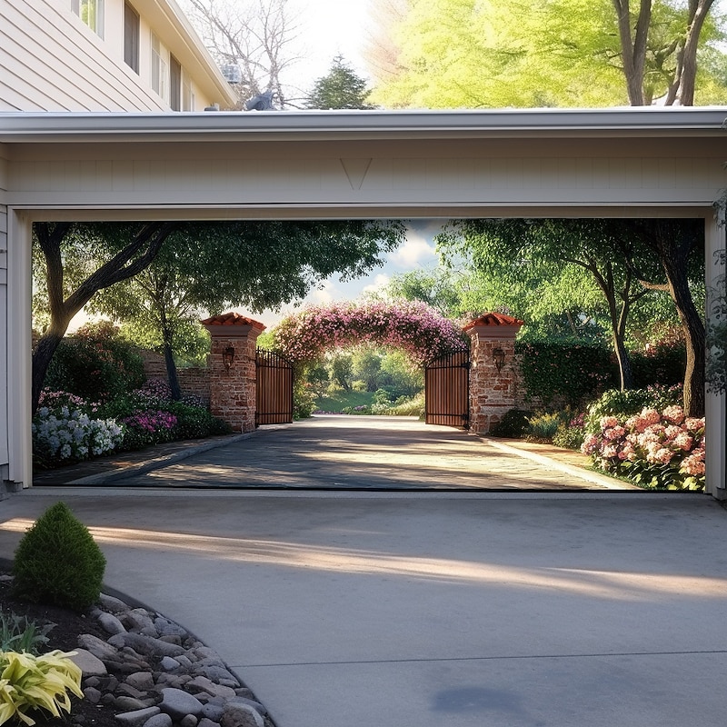 Landscape Garden Theme Door Decorations Garage Door Cover Outdoor Banner Large Backdrop for Holiday Outdoor Garage Door Home Wall Decorations 10