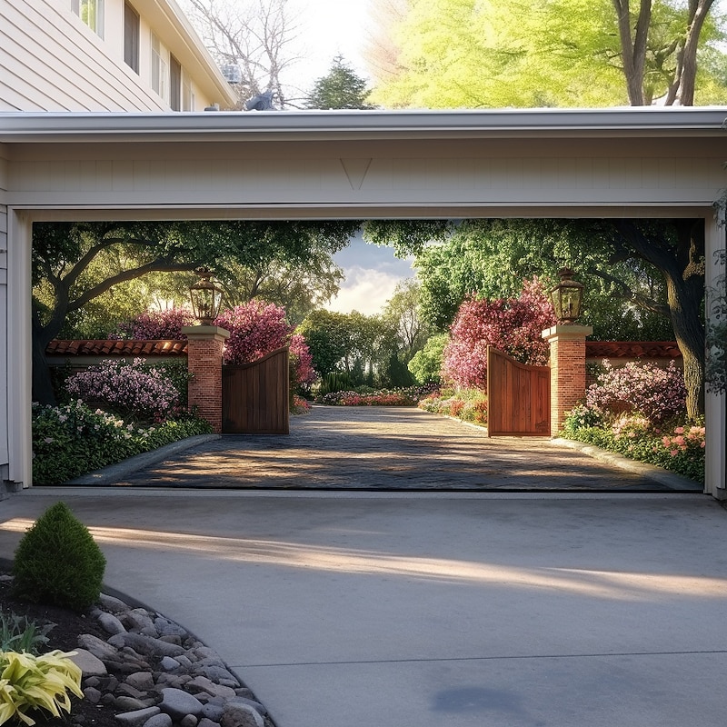 HOT ! Landscape Garden Theme Door Decorations Garage Door Cover Outdoor Banner Large Backdrop for Holiday Outdoor Garage Door Home Wall Decorations