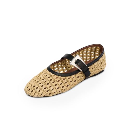 Woven Flats for Women Elegant Round Head Ballet Design with Mary Jane Style Pull-On Formal Shoes 5