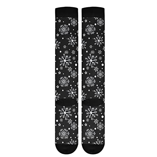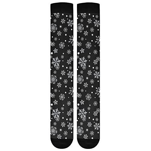 Kigai Knee High Socks Christmas Black Snowflake Compression Sock 1 Pair Casual Athletic Tube Socks for Soccer Women Men Medical Nurse Warm Stockings, 20-30mmHg 1