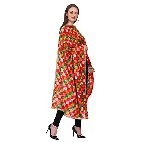 HOT ! Women's Embroidered Phulkari Chiffon Dupatta Free Multicolour