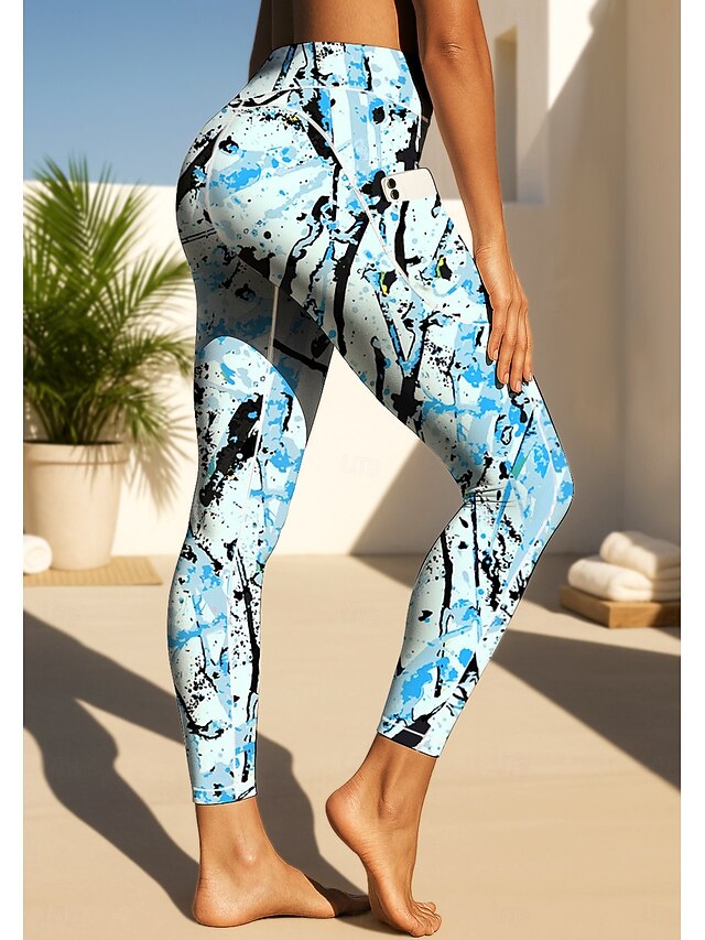Women's Unisex pilates leggings fitness pants Gym Leggings Pockets Stamp Duty Side Pockets Pilates Gym Gym Workout Pants Tights Leggings Graphic Abstract Graffiti Dark Grey Pink Blue Sports Activewear 5