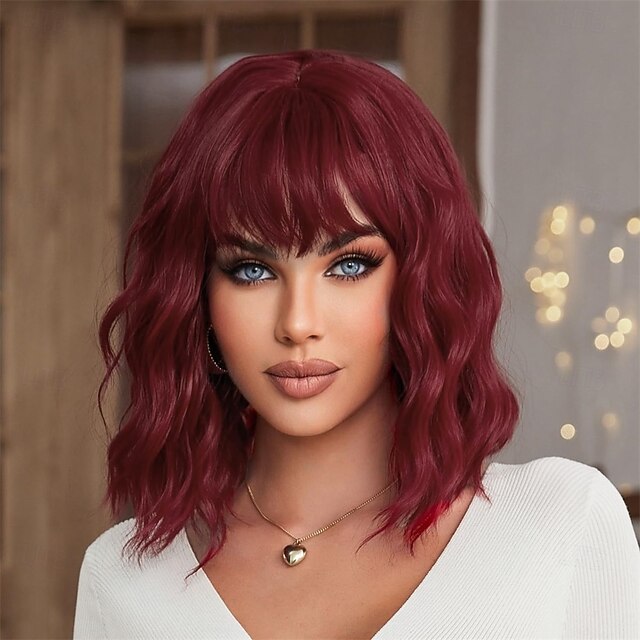 $25.99 - Red Wig with Bangs Short Wavy Wigs for Women Wine Red Curly Shoulder Length Bob Wig Synthetic fiber Wigs for Daily Party Use 2025. Shop for cheap Synthetic Trendy Wigs online? Buy at lightinthebox.com on sale today!