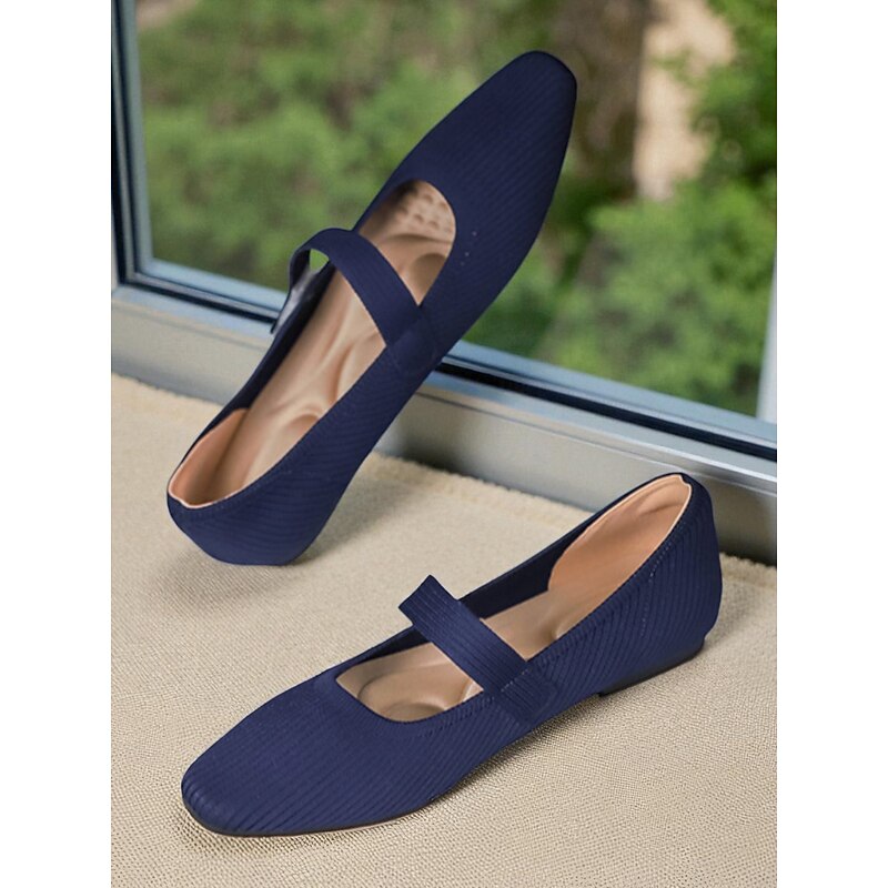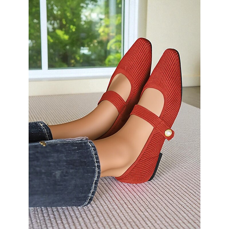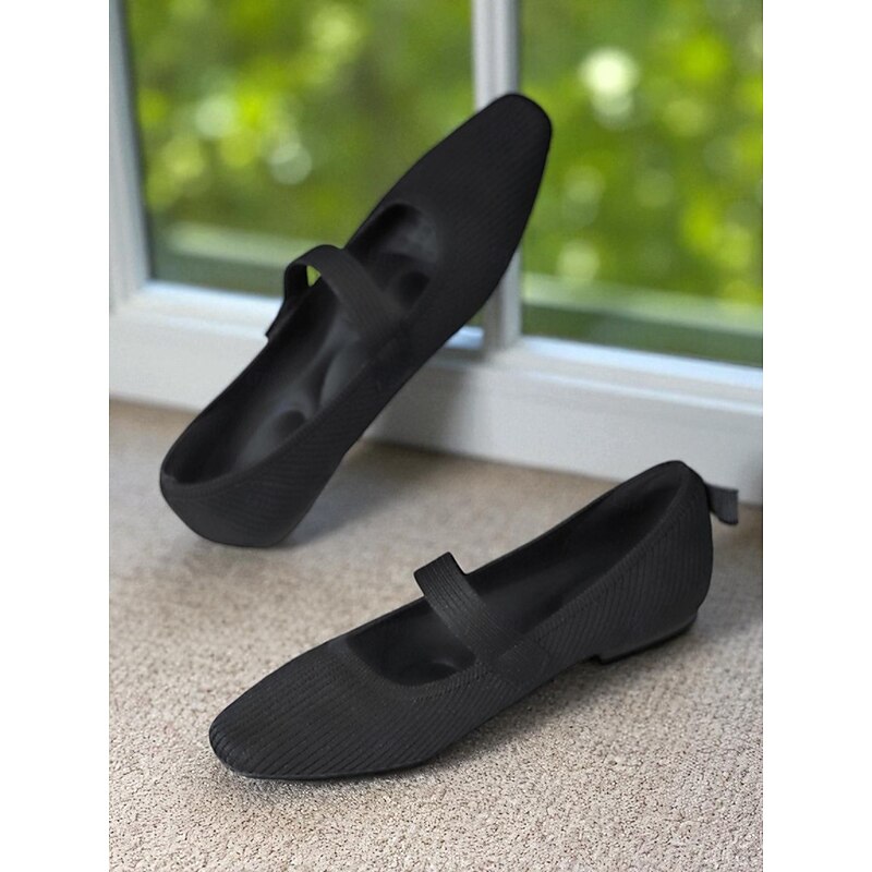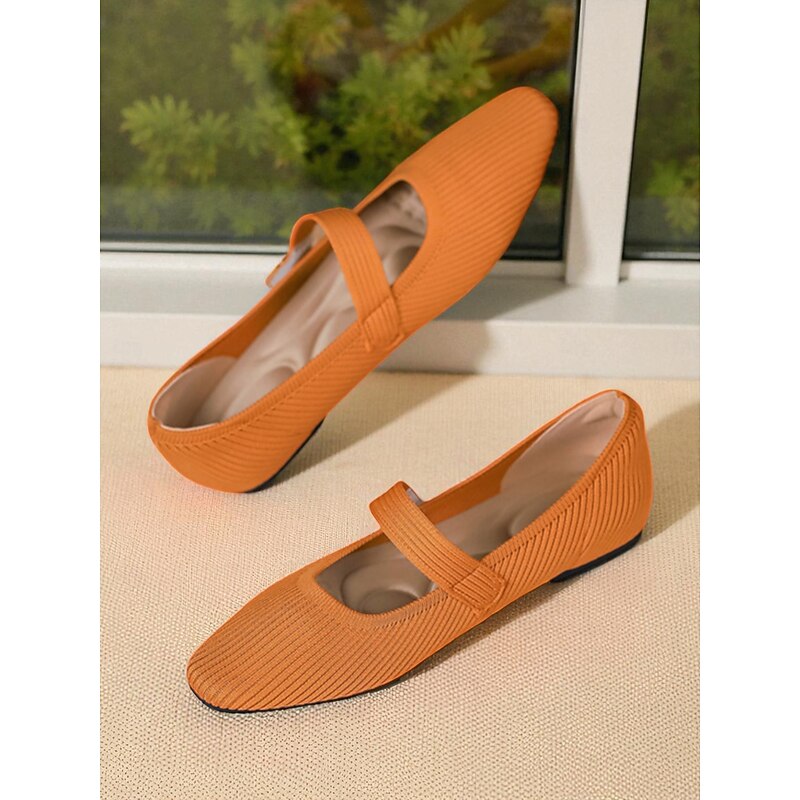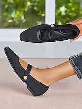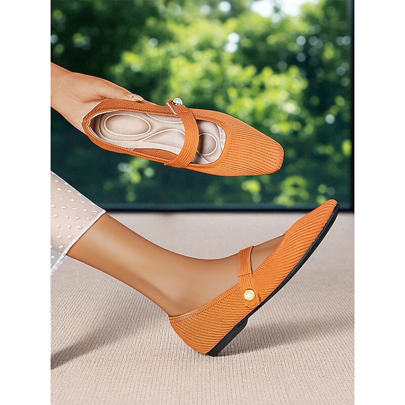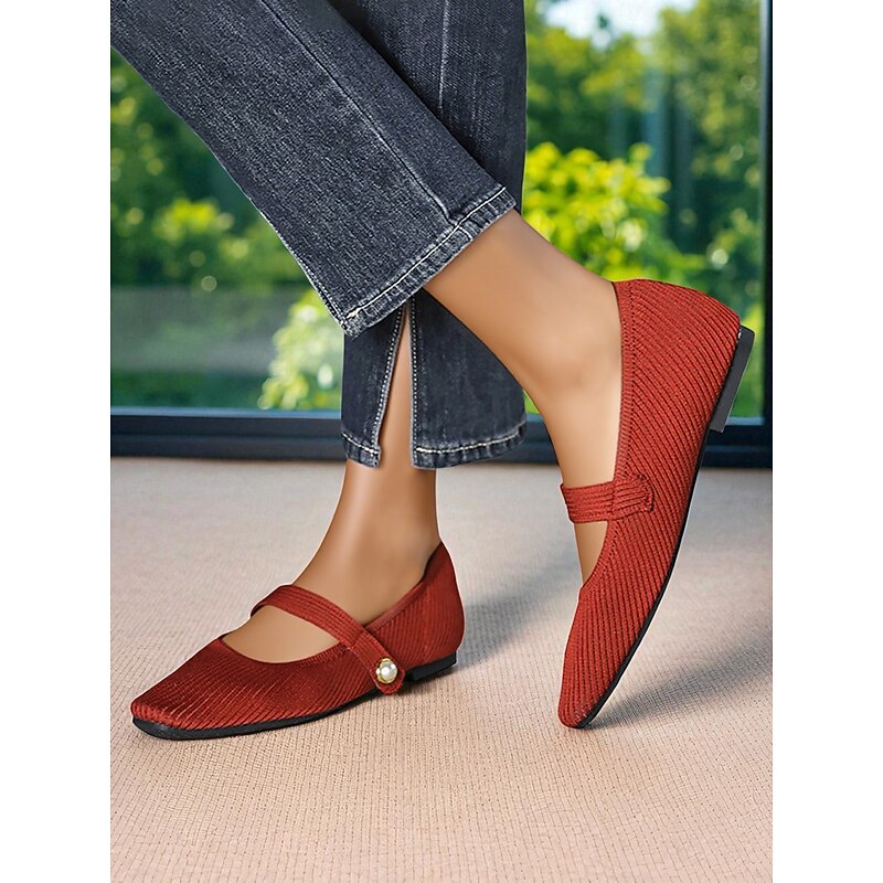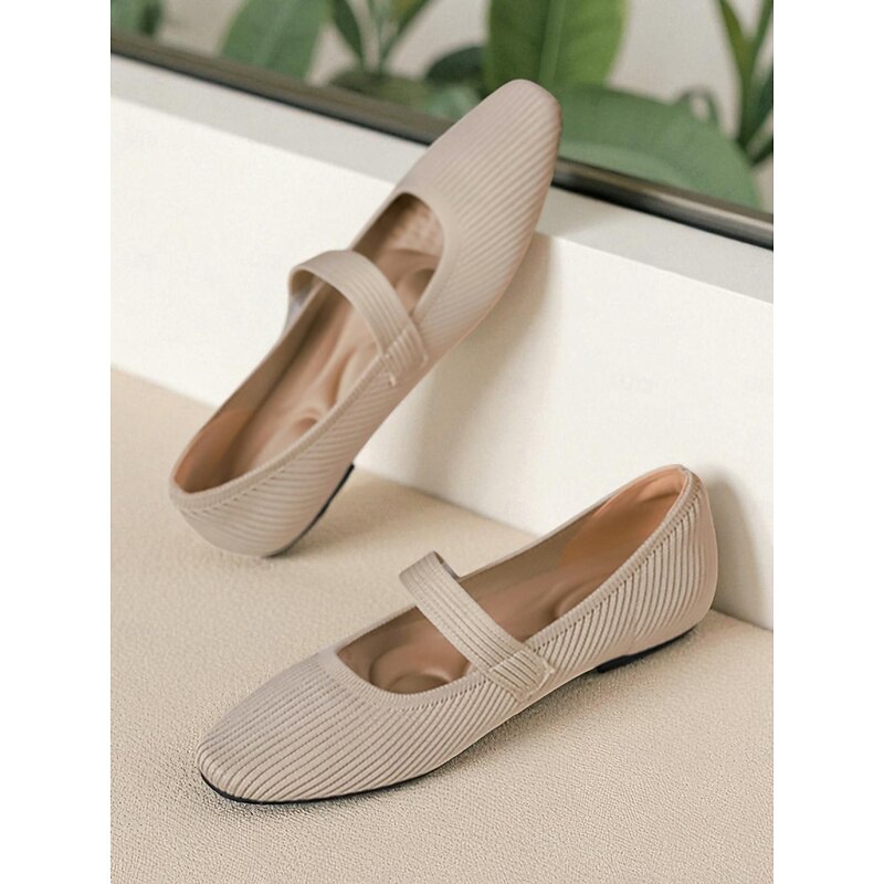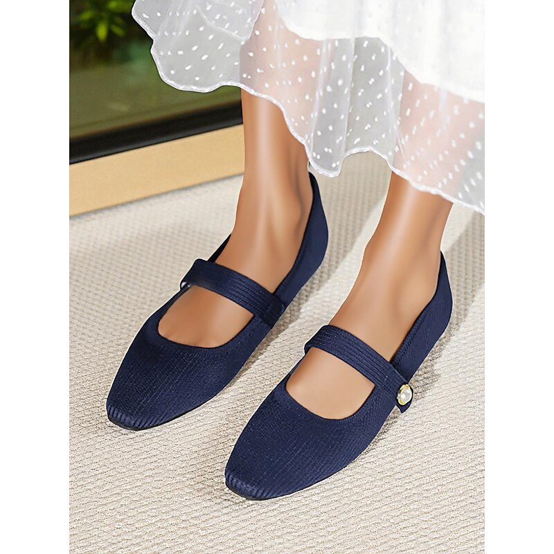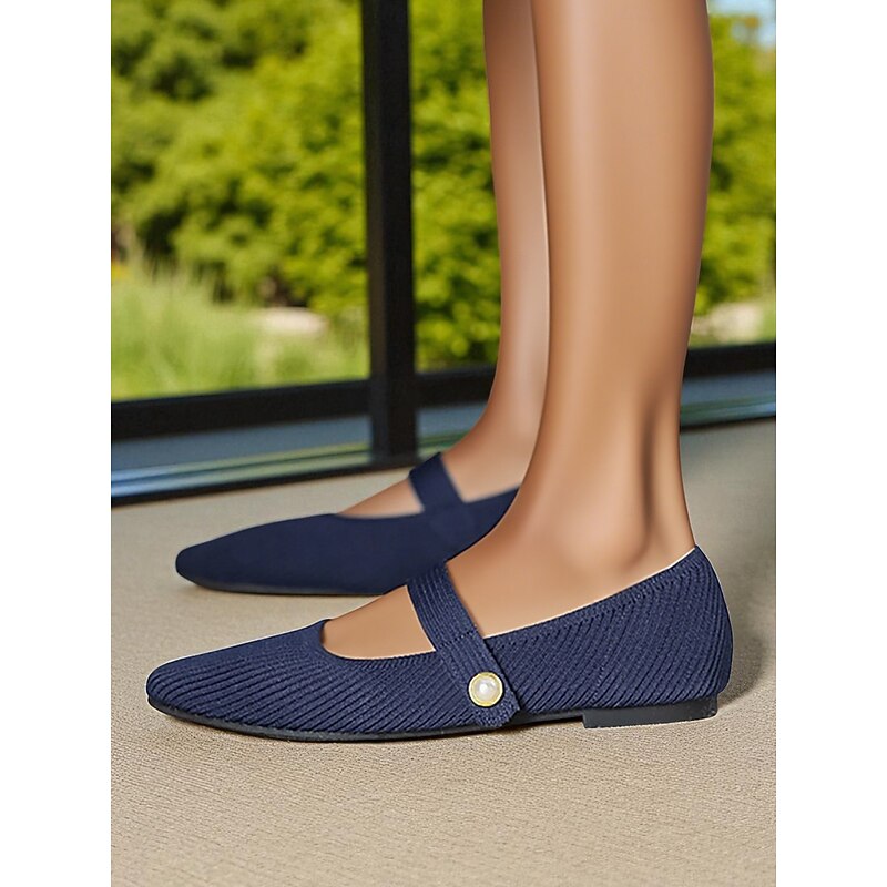 HOT ! Women's Beige Knit Mary Jane Flats with Pearl Strap - Lightweight Breathable Casual Shoes for Daily Wear,Travel and Office Outfits