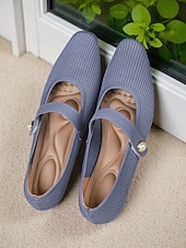 More information about Women's Beige Knit Mary Jane Flats with Pearl Strap - Lightweight Breathable Casual Shoes for Daily Wear,Travel and Office Outfits