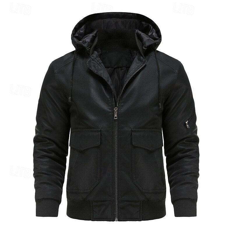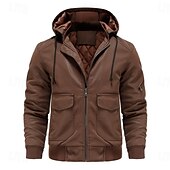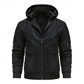 More information about Men's Faux Leather Jacket Hoodied Jacket Motorcycle Jacket Home Office Windbreaker Pocket Detachable Hood Winter Spring & Fall Color Block Vintage Classic Style Regular Black Brown Jacket