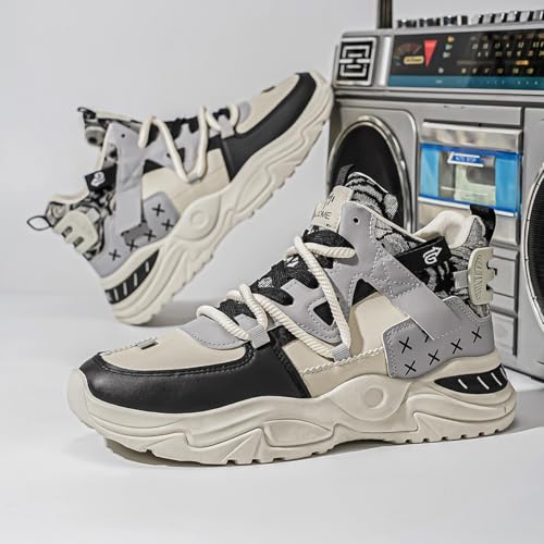 HOT ! Men's High Top Chunky Sneakers Chunky Sole Athletic Casual Walking Shoes Fashion Athletic Trainer Shoes with Patterned Collar Design