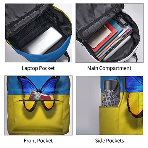More information about 16 inch backpack Ukrainian Flag Butterfly Laptop Backpack Full Print School Bookbag Shoulder Bag for Travel Daypack