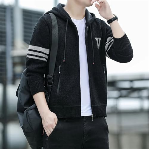 Mens Sweaters Jacket Knitted Fleece Lined Cardigan Winter Hooded Cardigans Casual Striped Coat 1