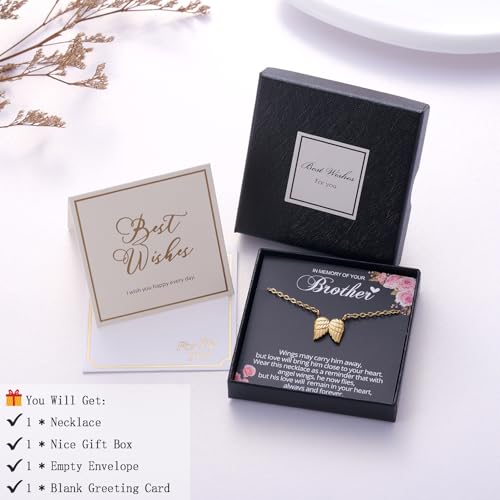 • Memorial Necklace for Loss of Brother - Honor the memory of your beloved brother with this beautifully crafted angel wing necklace, designed to bring comfort and remembrance. This memorial necklace comes with a heartfelt message card that reads: “Wings may carry him away, but love will bring him close to your heart...” A meaningful gift for anyone grieving the loss of a brother, offering a reminder that though he may be gone, his love remains with you—always and forever.
