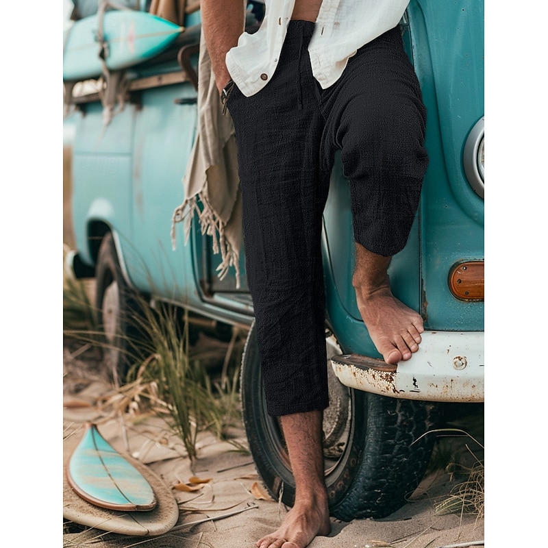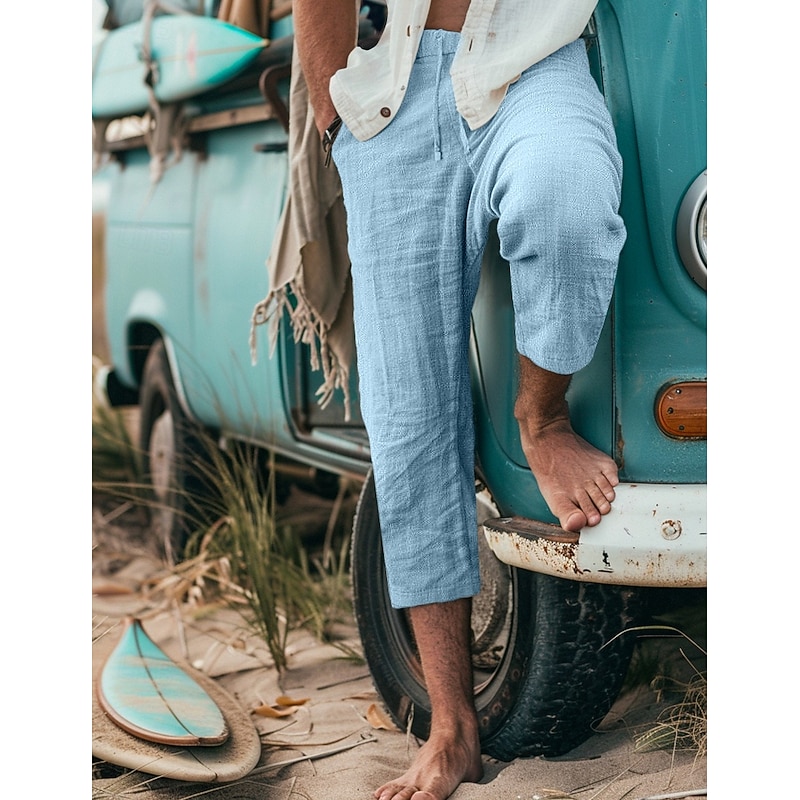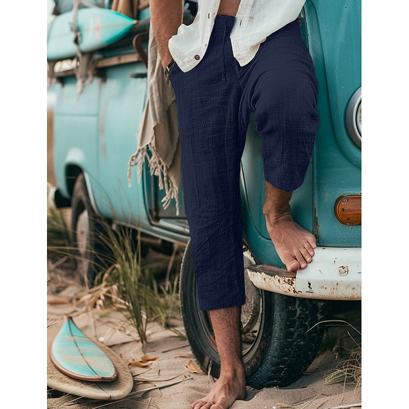 Highlights [Fabric] : Expertly crafted from 100% cotton, these men's shorts offer a breathable and lightweight feel, ensuring comfort in warm weather. The micro-elasticity of the fabric allows for flexible movement, making them ideal for daily wear. [Fit] : Featuring a regular fit with a cropped, calf-length silhouette, these shorts combine a stylish and casual look that's perfect for summer. The relaxed cut provides ease and comfort, whether you're heading for a day out or enjoying outdoor activities. [Design Highlights] : The shorts boast a practical drawstring and elastic waist, offering an adjustable fit for maximum comfort. Their plain pattern contributes to a versatile design, easy to pair with different casual tops. Available in a range of colors including White, Black, Navy Blue, Gray Green, Light Blue, Grey, and Khaki, these shorts cater to various style preferences. [Occasions] : Ideal for everyday wear, going out, or engaging in outdoor adventures, these shorts are a staple for any man seeking comfort and style during the summer months. Their breathable fabric makes them perfect for beach trips or leisurely weekend outings. [Size Range] : Available in sizes M, L, XL, 2XL, and 3XL, these shorts accommodate a wide range of body types, providing a great fit for many. Their versatile style and functional design make them a must-have addition to any summer wardrobe.