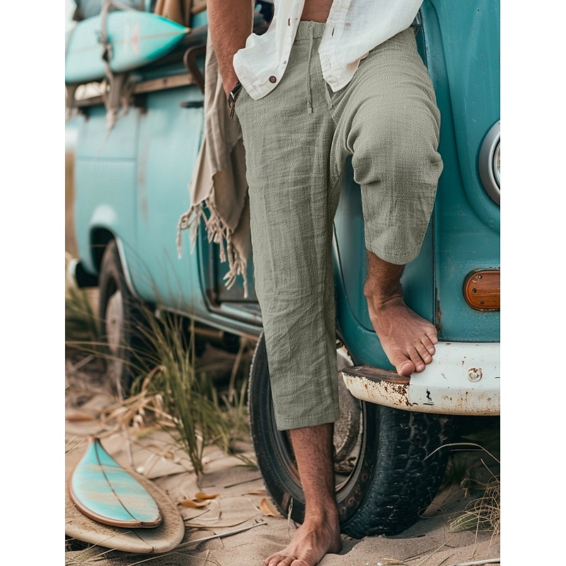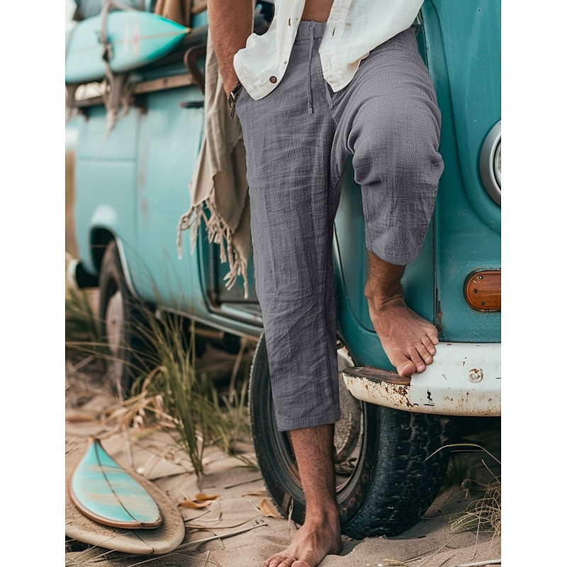 More information about Men's Shorts Summer Shorts Capri Pants Drawstring Elastic Waist Plain Comfort Breathable Calf-Length Outdoor Daily Going out Stylish Casual Gray Green Black Micro-elastic