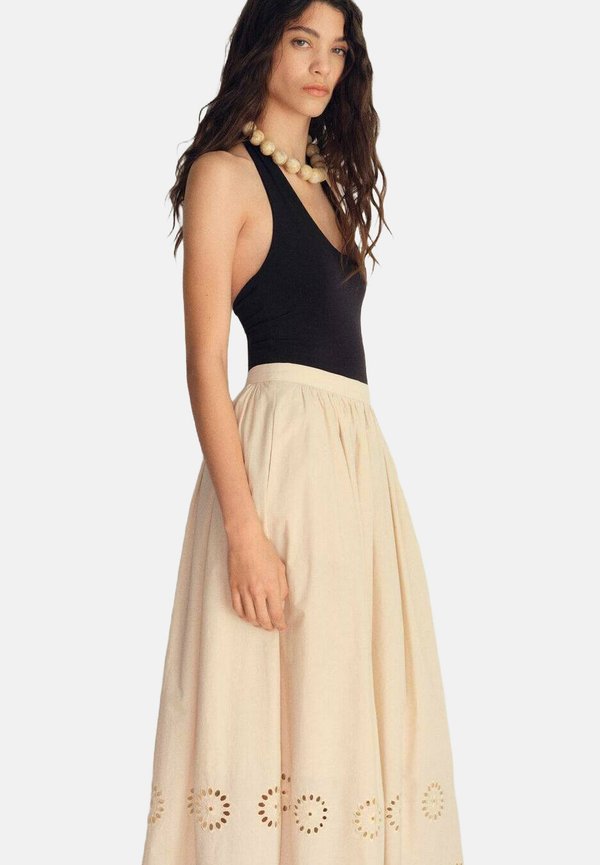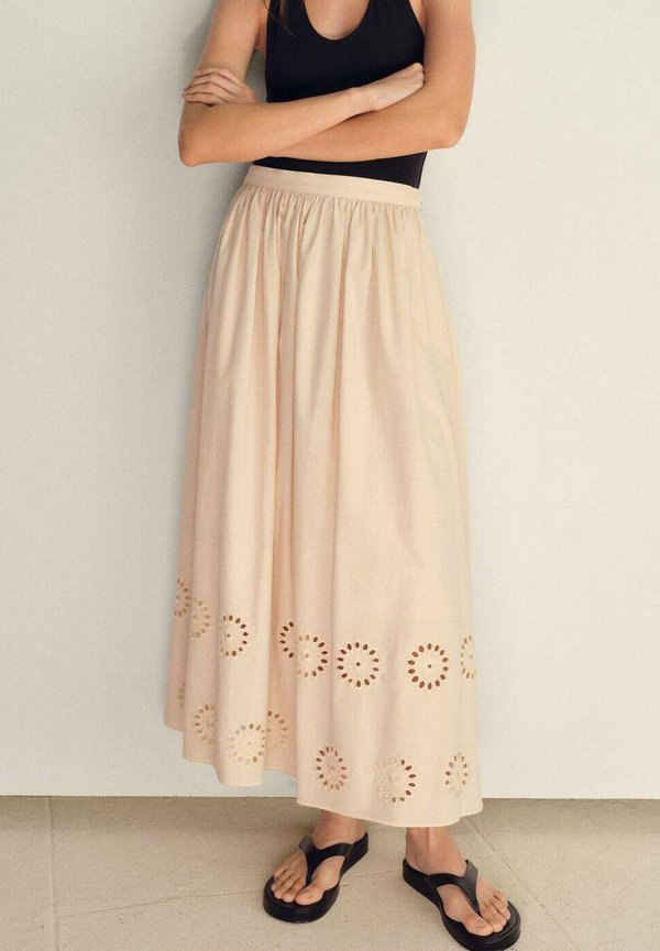 WITH EMBROIDERED HEM - Maxi skirt - beige 1
