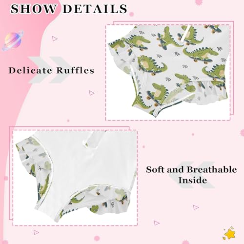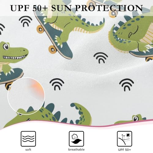 ALAZA Cartoon Crocodile Animal White Girls One Piece Swimsuit Long Sleeve Rash Guard Swimsuits UV 50+ Swimwear Zipper 6