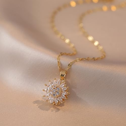• Premium Quality: Crafted with 14K gold plating and adorned with sparkling cubic zirconia sun necklace, this spinning sunflower necklaces is not only elegant but also resistant, ensuring long lasting wear without tarnishing