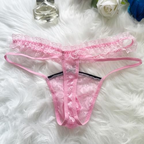 Mens Lace Frilly Sissy Panties Pouch Thong, Feminine G string Underwear For Men Sexy Lingerie 1