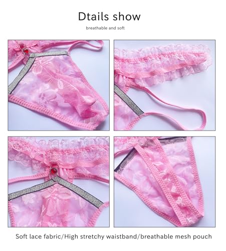 More information about Mens Lace Frilly Sissy Panties Pouch Thong, Feminine G string Underwear For Men Sexy Lingerie