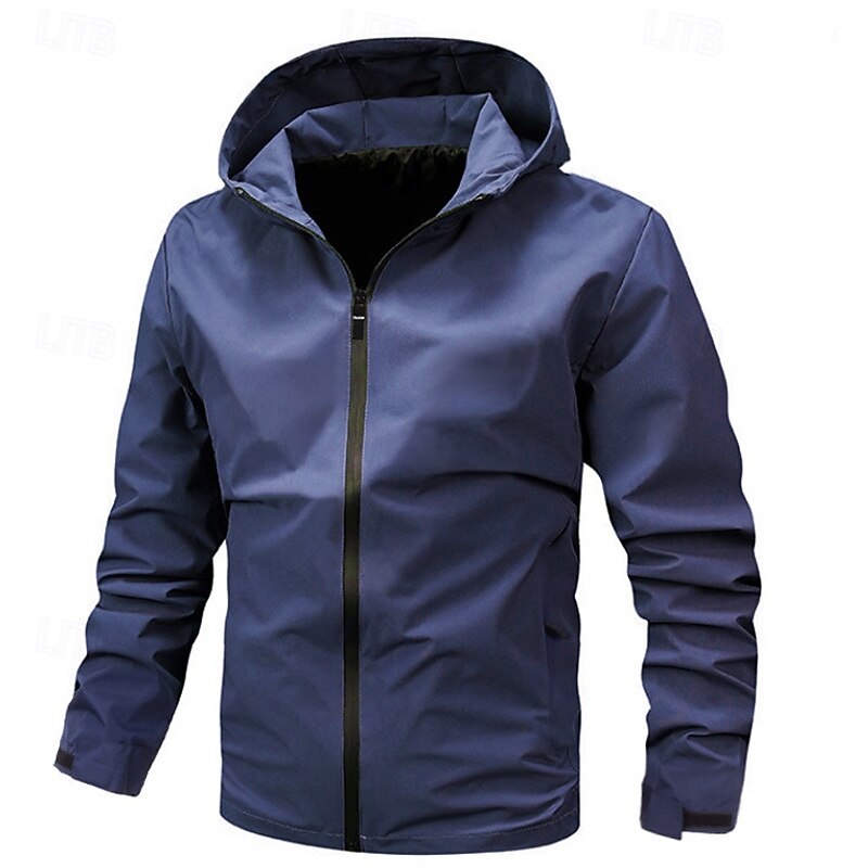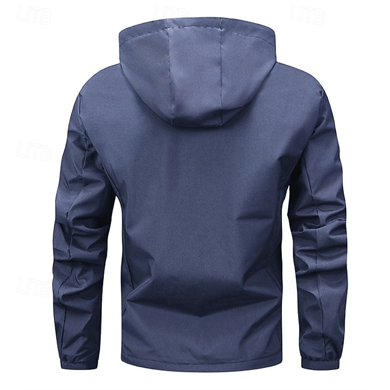 More information about Men's Outdoor Jacket Raincoat Hoodie Jacket Hiking Jacket Vacation Daily Waterproof Windproof Pocket Spring Fall Plain Fashion Classic Hooded Regular Black Red Navy Blue Royal Blue Jacket