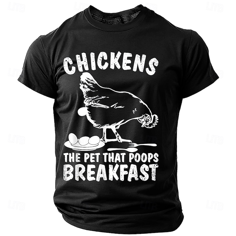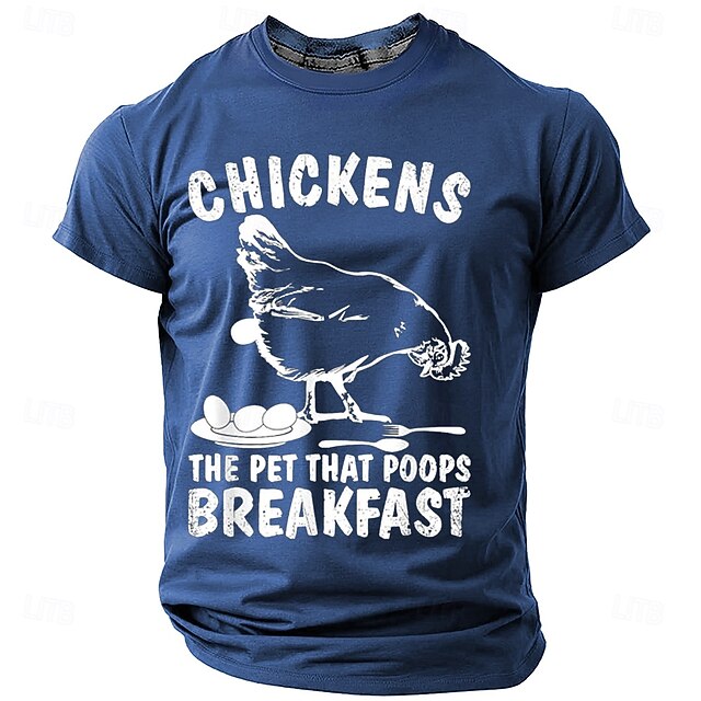 HOT ! Mens Short Sleeve Graphic T-Shirt Funny Chicken 'Chickens The Pet That Poops Breakfast'