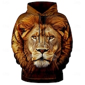 More information about Men's Lion Hoodie Hoodies Sweatshirt Daily Casual Long Sleeve Hooded Vacation Sports Outdoor Streetwear Brown Print Front Pocket Spring & Fall Designer