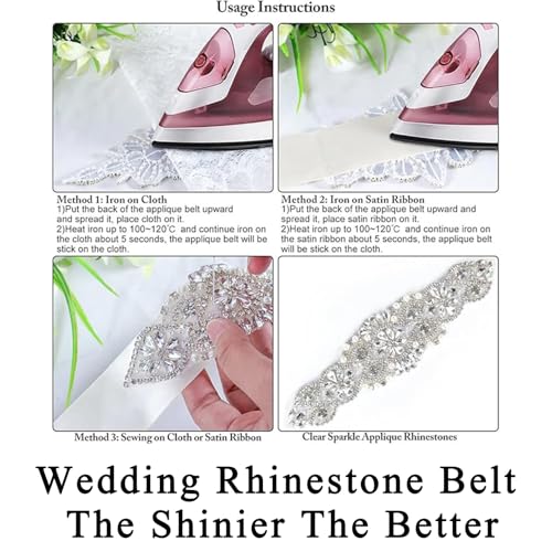 • √ WEDDING BELT: Rhinestone Belt Rhinestone applique Sash are great for wedding dress, evening gown,bridalheadpieces,evening dress Bags, shoes, flower baskets, furniture decoration.