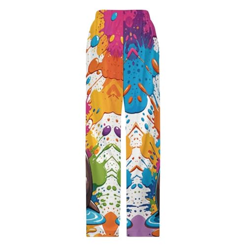 HOT ! Men Women's Unique Pajama Dalmatian Dog Print Lounge Pants Wide Leg