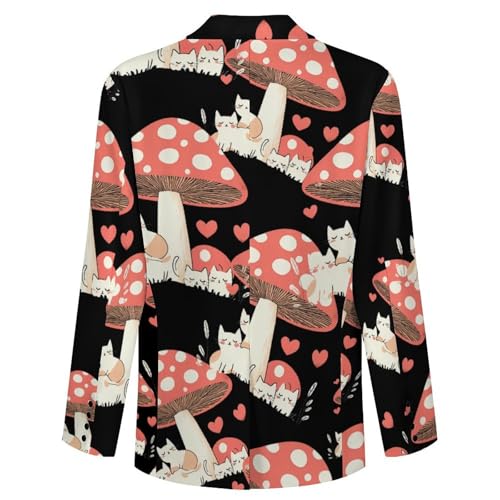 Cute Mushroom Cat Casual Men's Blazers Two Button Lapel Suits Jacket Lightweight Sport Coats 3