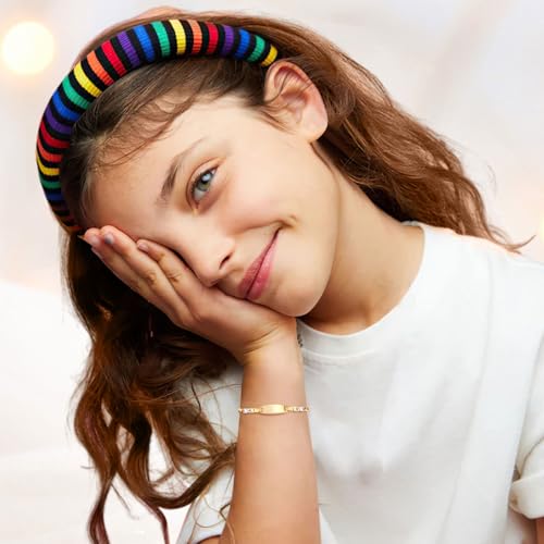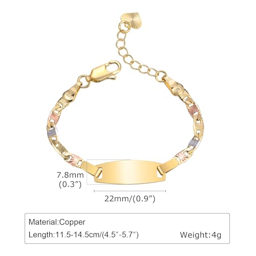 More information about Personalized Baby ID Bracelet - 18K Gold Plated Tri-Color Chain Custom Name ID Plate Bar Bracelet for Children Toddler from Mom,Engraved Kid Name Customized Birthday,Back To School Gift for Daughter