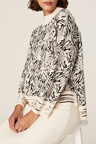 • Shake up your sweater stack with this abstract leopard-print Victor Alfaro Collective knit framed with a mock neck and sporty striped trim.