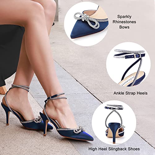 ELEGANTPARK Heels for Women Pointed Closed Toe Shoes Sexy Ankle Strap Rhinestones Bow High Heel Pumps Satin Wedding Evening Prom Dress Shoes 7