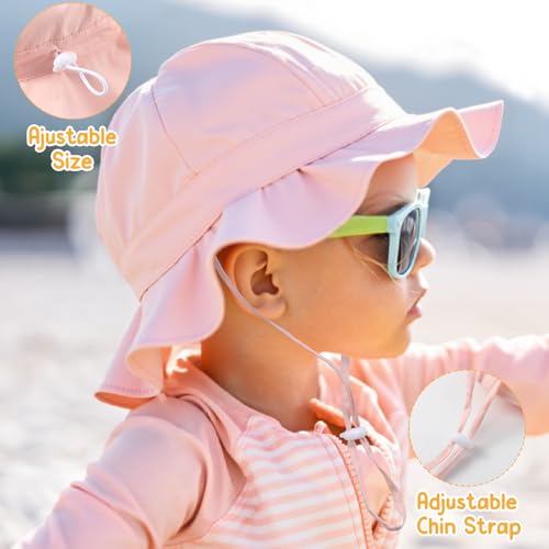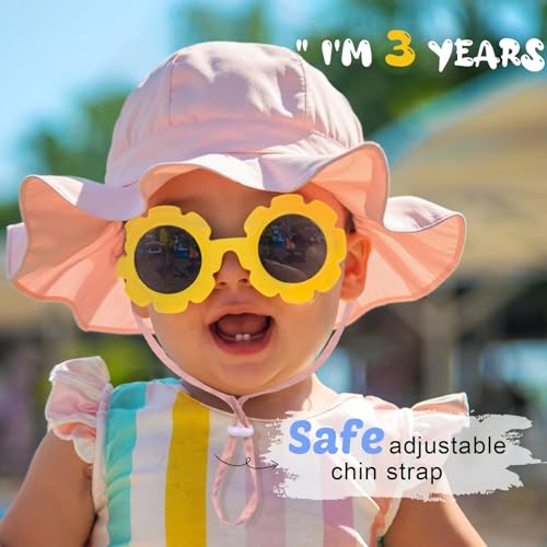 • SAFETY RELEASE CHIN STRAP: The wide brim baby sun protection beach hat comes with a durable chin strap to keep it stay on baby head when they are playing or in wind and the strap is easy to slide up and down. Perfect for baby girls and boys to have a great play time outside. Definitely a great accessory for your little girls and boys in daily life and easy to folds up and carry