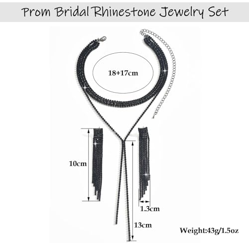 • Bridal Rhinestone Jewelry Set:The crystal wedding jewelry set for women, come with 1pcs rhinestone Y-shaped necklace and 1pair long tassel dangle earrings,elegant and dazzling crystal design, let you stand out in the crowd and get more compliments