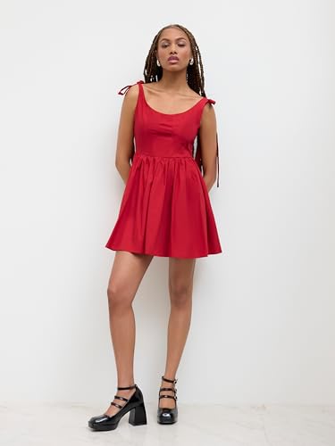 CIDER Mini Dress for Women Dresses Women Party Dresses Scoop Neck Sleeveless Ruffle Knotted Short Dress 4