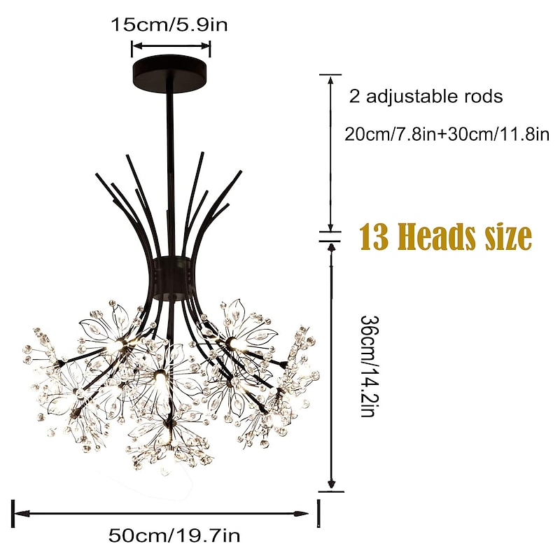 13Heard Modern Fireworks Chandelier G4 Lamp Cap Crystal Dandelion Art Chandelier Ceiling Lamp in Living Room Bedroom and Dining Room 9