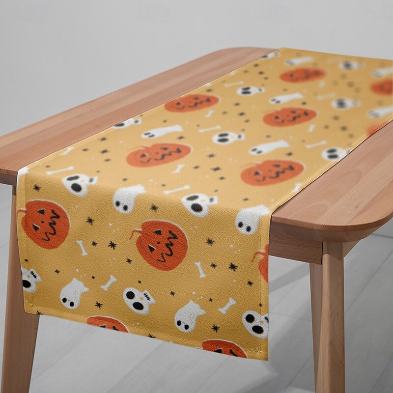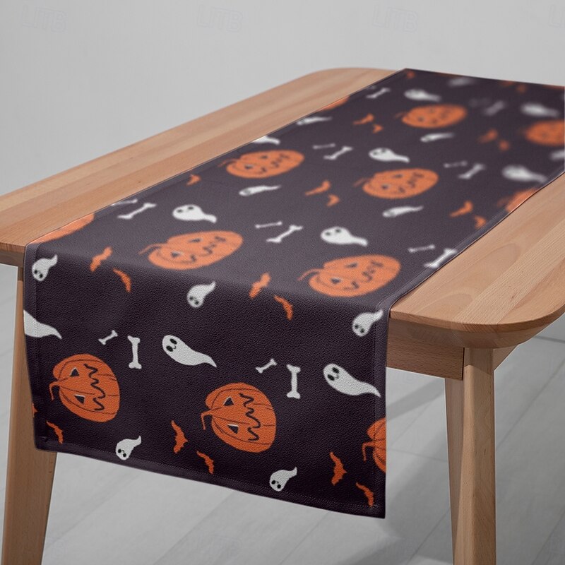 HOT ! Halloween Table Runner Tablecloth, Ghost Pumpkin Printed Fabric Table Cover for Dining Room, Party, or Holiday Decoration