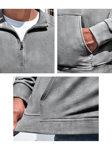 ZIWOCH Mens Quarter Zip Pullover Sweatshirt Long Sleeve Cotton Outdoor Hoodies with Pocket 5