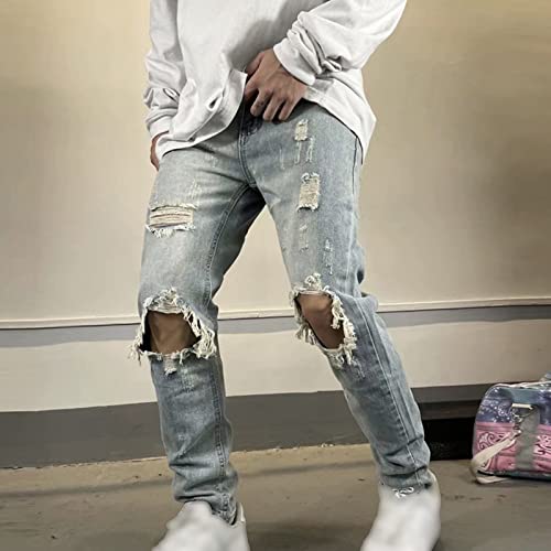 HOT ! Maiyifu-GJ Men's Ripped Slim Fit Denim Pants Distressed Destroyed Skinny Jeans Straight Leg Jean Trousers with Big Holes