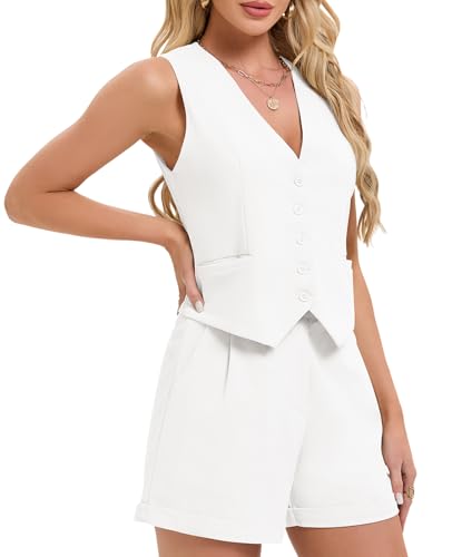 More information about MINTLIMIT Women's Summer 2 Piece Outfits Sleeveless Matching Sets Button Down V Neck Waistcoat Vest and Pockets Shorts