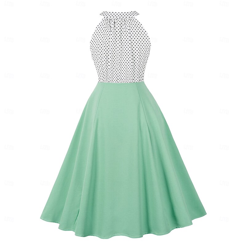Retro Vintage 1950s Rockabilly Midi Swing Dress Flare Dress Fit and Flare Polka Dot Halter Neck Fancy Dress Women's Masquerade Vacation Casual Retro Theme Party Adults Dress Spring & Summer 11