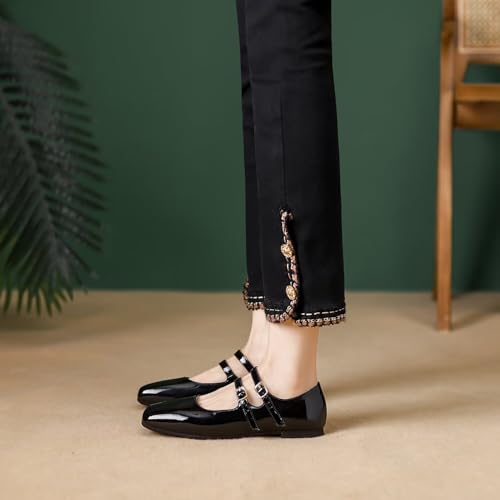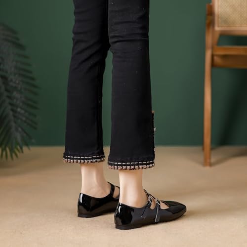 Hee grand Mary Jane Flats for Women Patent Leather Dress Shoes Square Toe Adjustable Buckle Strap Ballet Flats 6