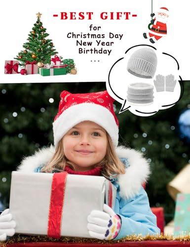 Kids Hat and Gloves Set Girl Boys, Toddler Beanie Winter Hat Neck Warmer Gaiter Gloves Mittens Fleece Lined for 6-8 4t 5t 4-8 4